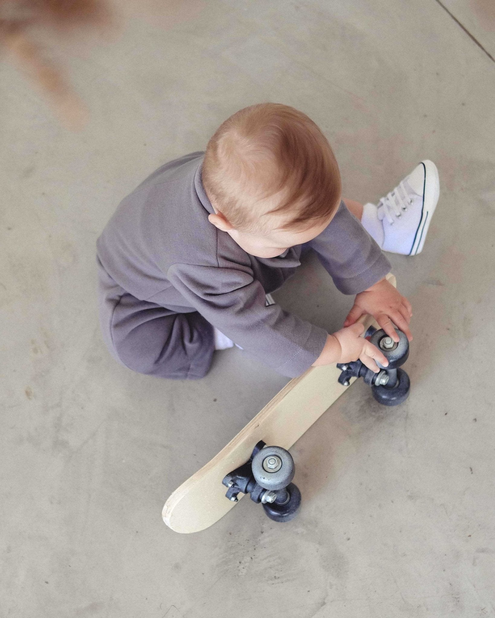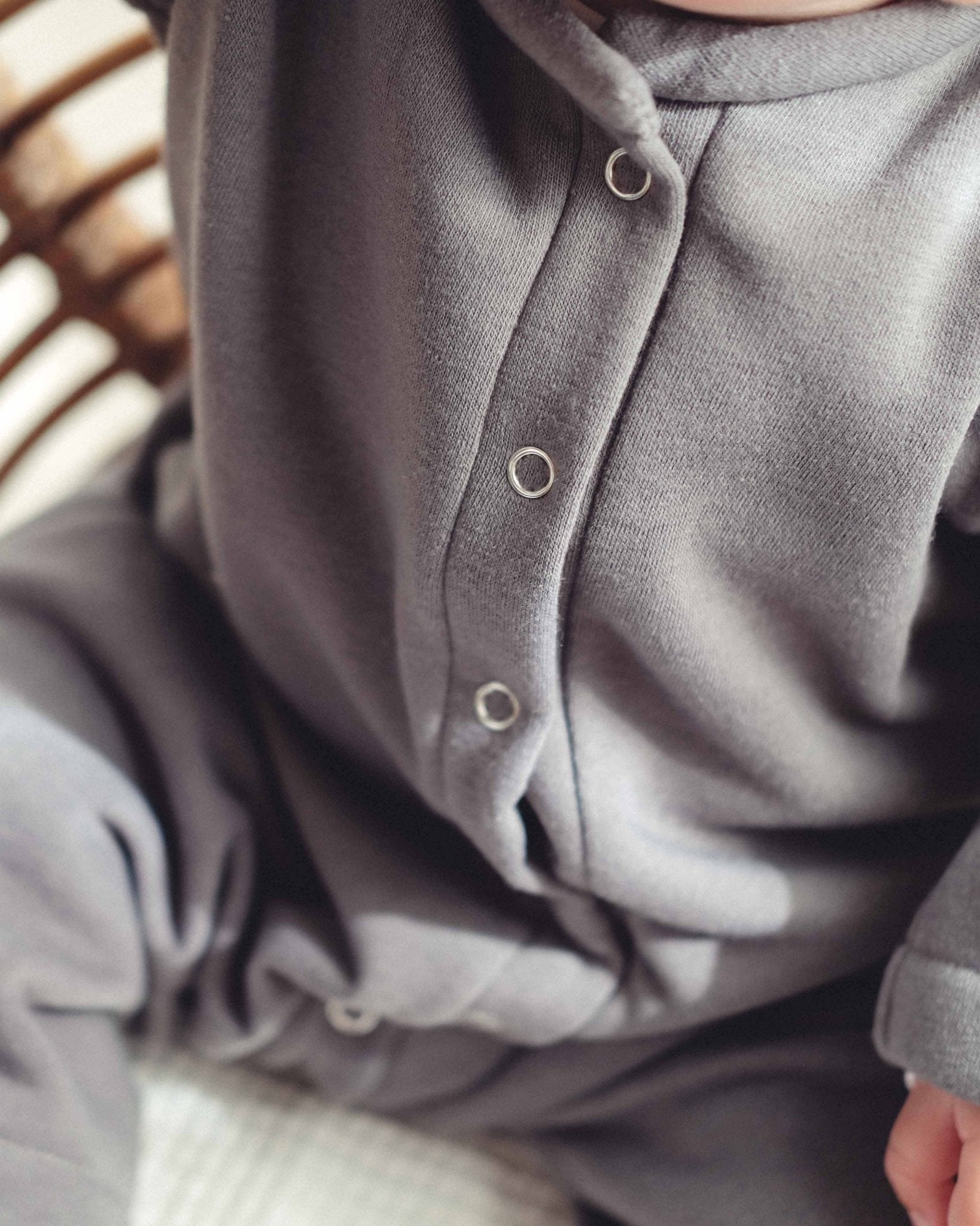 Our relaxed fit jumpsuit is perfect for outdoor autumn adventures or slow winter days indoors. The jumpsuit has snap buttons for quick and easy changes.